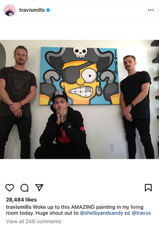 shelby and sandy were commissioned by Travis Mills to create a painting of his favorite character, Bart Simpson.